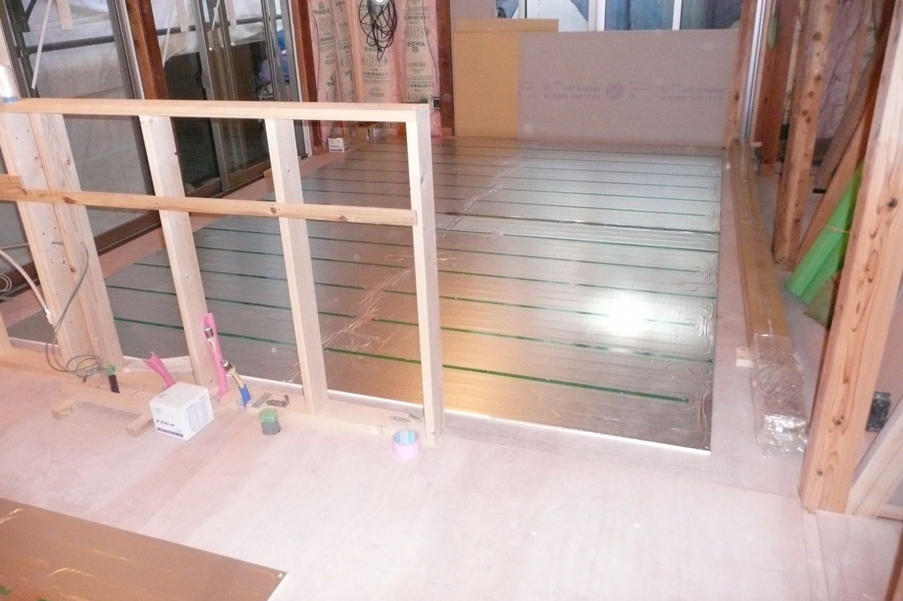 床暖房はいいですよ。 2011年1月28日 kunidca こんにちは 最近、新築やリフォーム工事をされる方は、床暖房にされる方が多いですね。 今、工事をしているお宅も床暖房にしています。 こちらは温水式の床暖房です。 仕上げはこの様にフローリング(床暖房対応)を張っていきます。 床暖房は風が出ないので、ほんのり暖かく気持ちがいいので、 寝ころんでいると、思わずウトウトしてしまいますよ、ほんとに!