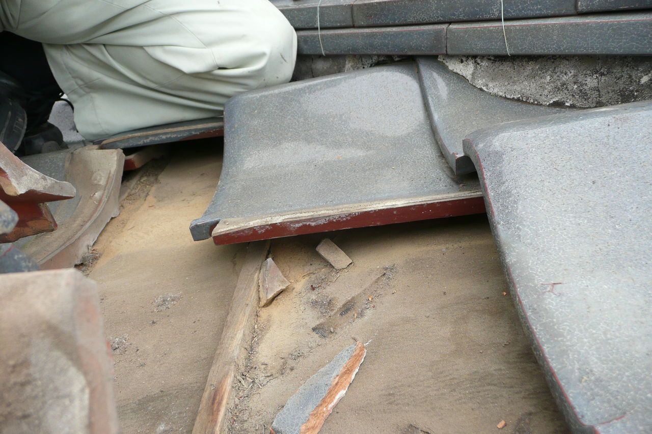 雨漏りの修理 2011年6月11日 kunidca 屋根からの雨漏り。 この時期、雨が幾度となく降りますが雨漏りを発見する方も多いのでは? 今回、瓦屋根からの雨漏りですが このように、棟のあたりの漆喰がはがれて中の土が雨で流れてします。 瓦の下に雨が入り込み、土が流れ混んでいました。 下葺き材を張替えてこれで大丈夫! 後は棟を積みなおして完成です。 最近は耐震の問題もあり、瓦は重いので軽い物に葺き替える事が多くなりました。